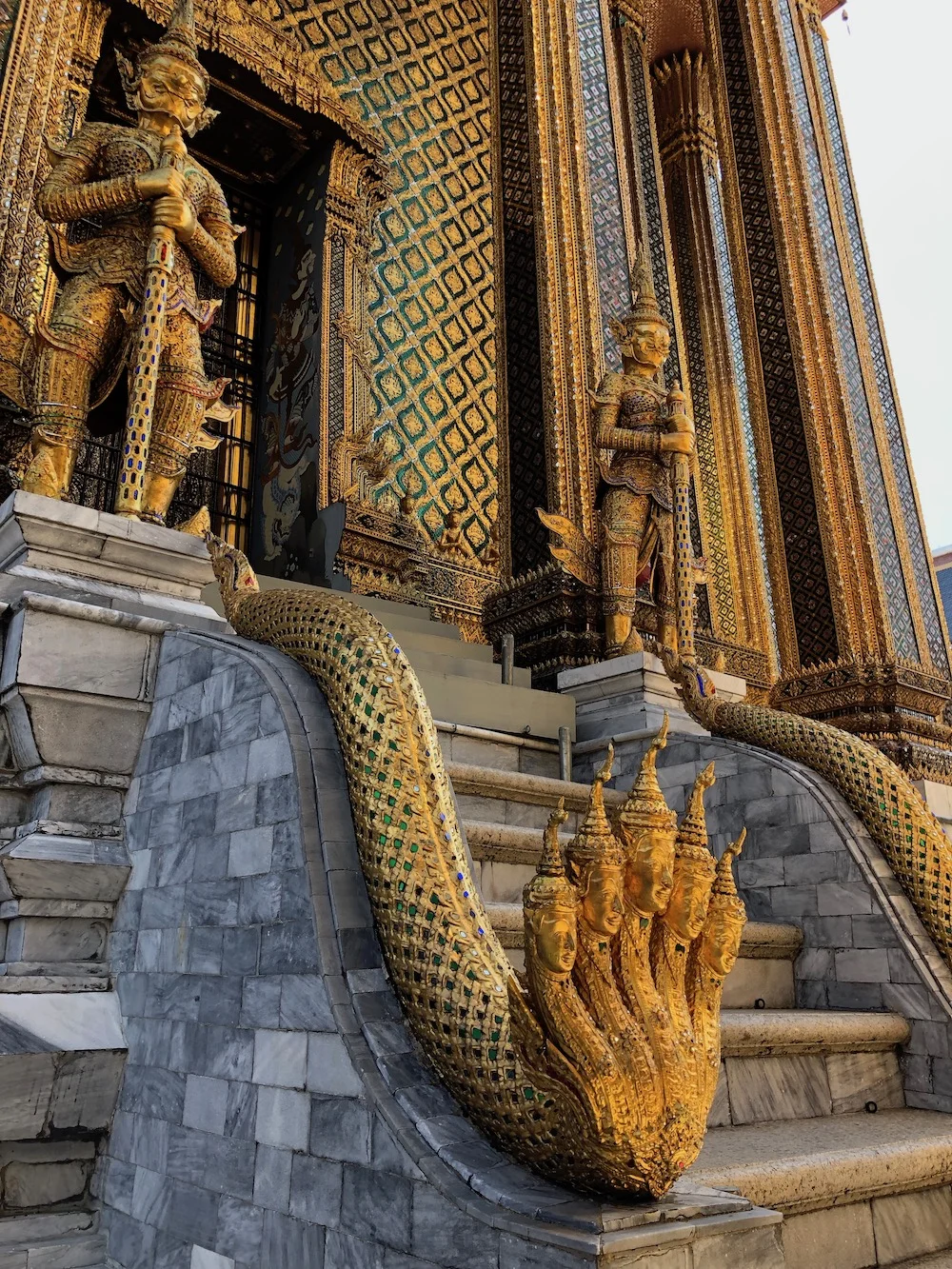 If you’re picturing a quiet, soothing place of prayer and reflection, then you’ve got the other type of Bhuddism in mind. The dominant strain of Bhuddism in Thailand is Theravada, sort of a more-is-more Bhuddist philosophy—and it’s practiced by some 94% of the Thai population. Let that sink in for a minute. 94%. That, my friends, is a remarkable degree of cultural homogeneity. Heck, we can’t even get 94% of Americans to agree we landed on the moon!